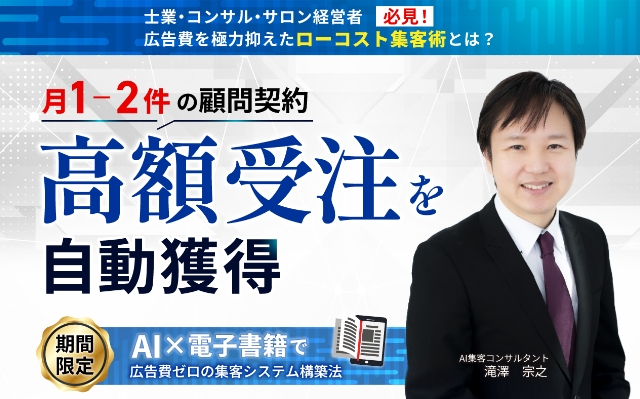 はじめまして。AI集客コンサルタントの滝澤宗之と申します。